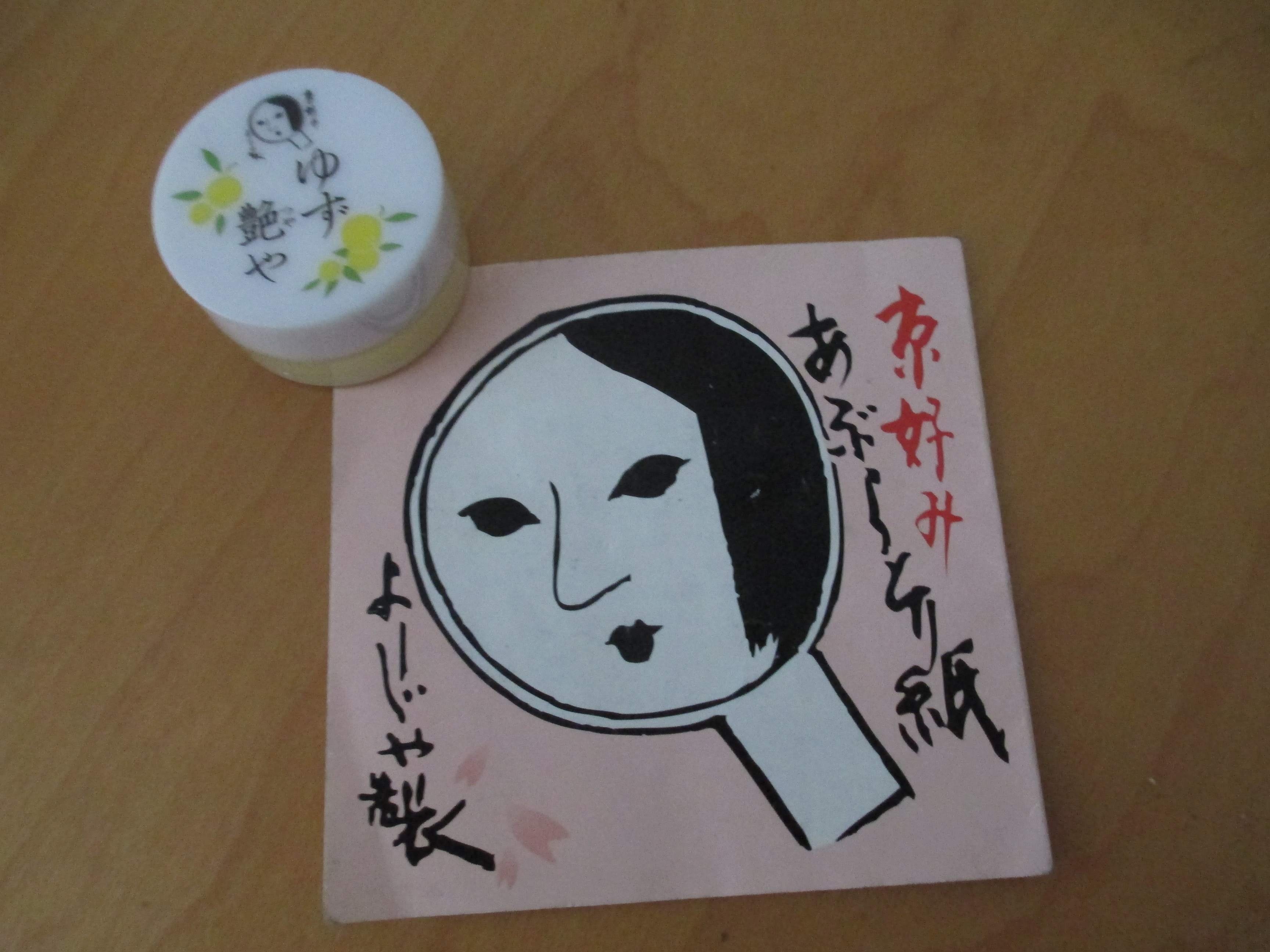 - Oil blotting paper from Yojiya. Yojiya is a make-up brand with a distinctive logo: a black and white face of a girl in a mirror. The brand originated in Kyoto. There are only two stores in Tokyo – one is in Shibuya. The flagship product is oil blotting paper which is perfect for getting rid of the 3pm shine. A pack of 20 is ¥300 ($3). I also bought hand cream and lip balm.